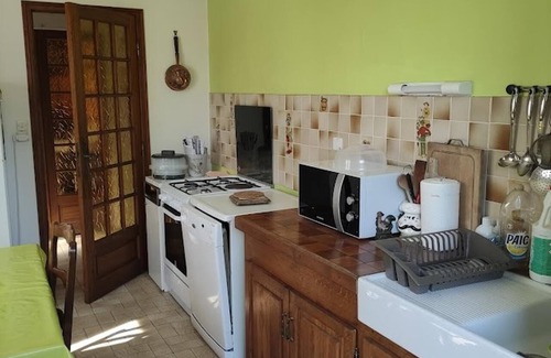 House comprising on the ground floor, an equipped kitchen, living room, tv, bathroom, wc, a double bedroom, upstairs a bedroom with 2 beds. the 800m2 garden is fenced.