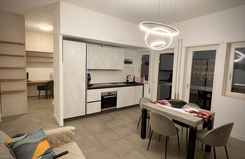 The apartment is equipped with a double bedroom with a dedicated wardrobe, a study with desk and another very large wardrobe, a living room with kitchen complete with all appliances.