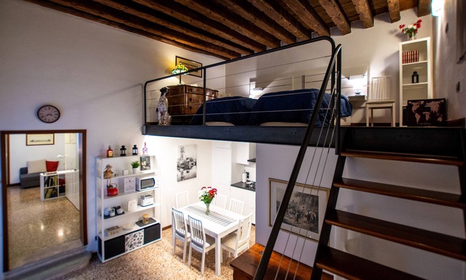 In the heart of Padua, three minutes from the Duomo and five from the squares, in the internal courtyard of an ancient noble palace of the sixteenth century, you can stay in this exclusive apartment equipped with numerous comforts. Very quiet, air conditioned, it has a double bedroom, a mezzanine with two single beds and a living room with a double sofa bed. The location offers the opportunity to visit the entire historic center on foot or to quickly reach public transport to get out of the center.