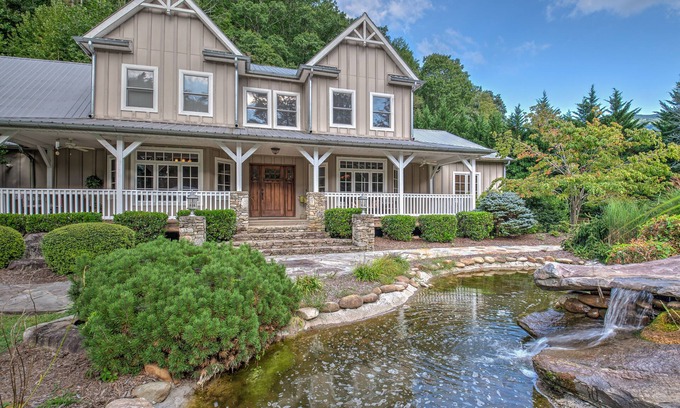 A Stunning Creekside Home, Breathtaking Waterfeatures to Enjoy from Every Window | House in Maggie Valley
