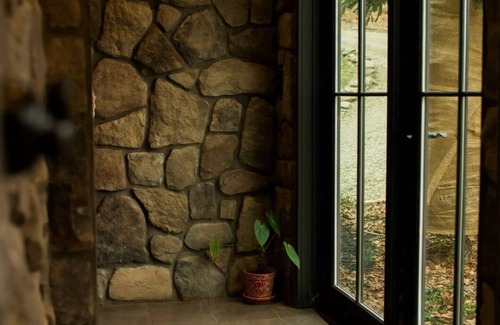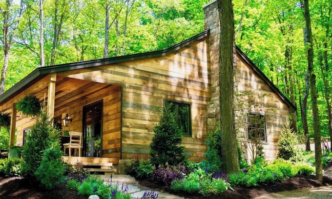 The Lodge at June Farms is a stunning, rustic, open-floor-plan retreat. The screened-in front porch looks down onto our beautiful horse pasture. This main cabin is our most romantic cabin on the property. Our gigantic rain shower in the bathroom has an 8'x5' wall mirror and a French door that opens out to the forest. If you are a cook, this cabin is a chef's dream.