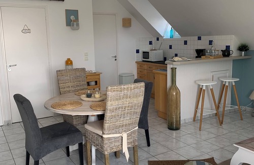 A sunny apartment just 2 steps from the port, decorated to a high standard is located in Barneville-Carteret. A sunny apartment just 2 steps from the port, decorated to a high standard provides accommodation, featuring Internet, Kitchen, Security/Safety, among other amenities. This Apartment features Internet, Kitchen, Security/Safety, to make your stay a comfortable one.