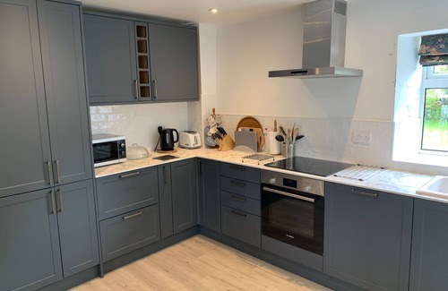 The kitchen is fully equipped with all you should require during your stay with plenty of storage space and worksurface. There is a fridge, freezer, washing machine, tumble dryer and dining table suitable for 4 people. The living space offers comfortable seating for 4 people around the wonderful wood burner, perfect to curl up in front of on cooler evenings. The cottage is heated throughout with oil central heating and benefits from free WiFi, flat screen TV and a skybox with freeview channels. Upstairs sleeps 3 people, one double bedroom and one single bedroom, with traditional beams plus a family bathroom.