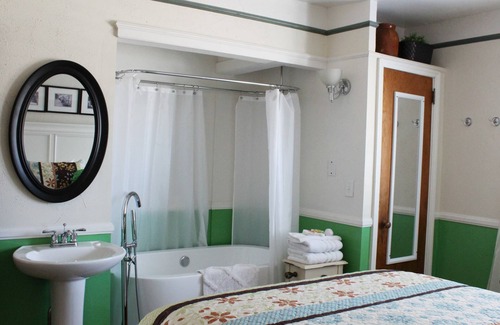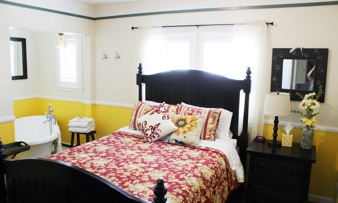 Each of our 3 luxurious bedrooms has its own deep, pedestal tub, private bathroom, television and DVD player. The Sunflower Room also boasts a relaxing electric fireplace.