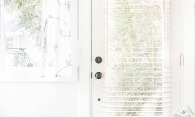The house sits on the front left corner of our property and is surrounded on three sides by a privacy fence. The front faces the driveway, which is where you'll pull up and park (left side). In effect, because of the tall fence, guests have an entire property with yard and driveway to themselves. Easy, keyless entry and a flood light that comes on if you arrive at night.