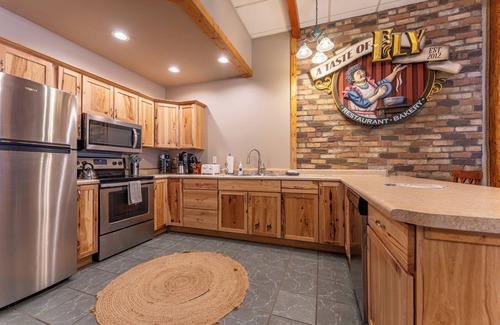 In downtown Ely, the property is uniquely flat, allowing for ease of access during all seasons. The elegant, yet comfortable home is approximately 3000 sq ft and includes 4 bedrooms, a unique dining table, modern showers, two living rooms and pool table. The kitchen and living room are an open concept, with the bathroom and laundry room are located adjacent to the kitchen. The 3 downstairs bedrooms feature: (1) one queen, (2) two bunk beds, and (3) one king. The upstairs bedroom feature a queen bed with a sofa bed in the loft. We supply all your basic kitchen needs, linens, extra blankets/pillows, towels, and basic toilet items.