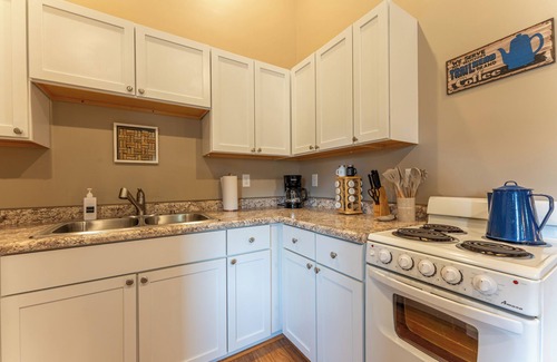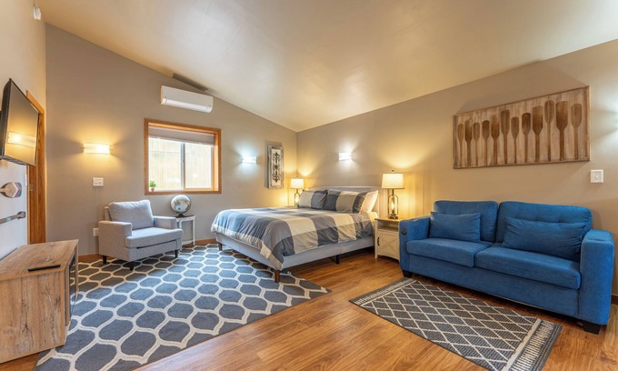 This ground level studio apartment sits in the heart of Ely’s downtown with shops, coffee, restaurants, bars, art, parks, and more. Our studio apartment comfortably sleeps two guests with a king bed, full kitchen and one bath. The apartment was recently renovated.