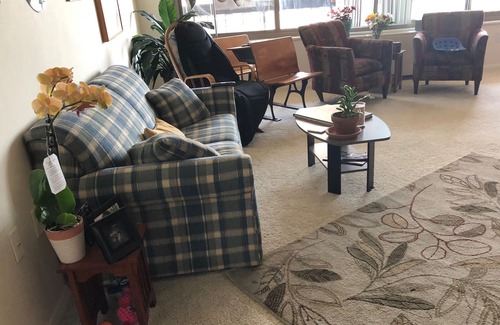 My home is furnished for the adult I am. A fully functional kitchen, dinning room with seating for 4, living room with a seating area and places to watch a 43"TV and sofa bed. Each bedroom features a queen sized bed and closets and dressers with mirrors and TVs. There are two full bathrooms. The place is tastefully decorated with art and live plants. It is my home so there are pictures of my children and grandchildren.