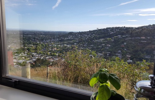 Welcome to our secluded and spacious "tiny" home with sweeping views across the city to the sea and mountains, nestled in native trees on a lower crest of Cashmere hill, just 6km from the CBD. You can look forward to relaxing, unwinding and recharging in privacy, or to enjoy easy access to the city, Port Hills and Lyttelton.
