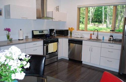 Located at the heart of woodstock (on Ricks Rd) this newly built cabin is a dream gateway. Spacious, with all modern amenities, free wi-fi, cable TV, Netflix enabled, Gas fireplace, whisper quiet AC, romantic outdoor hot tub, large covered deck with infrared BBQ grill. Great lounging chairs to take in the views, large bedroom, by the stream with queen size bed. Back yard with great rock formations.