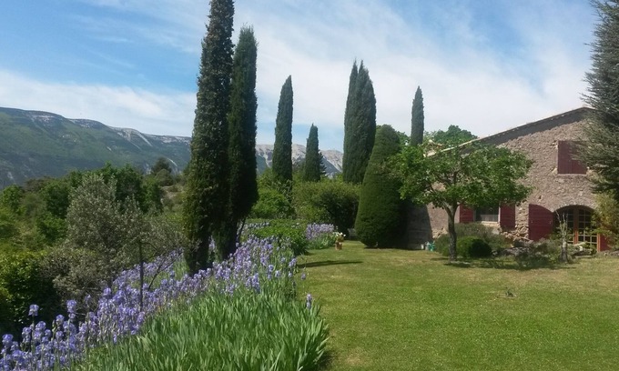 La Bergerie is a large family home perched facing Mont-Ventoux, it is a place conducive to calm and relaxation in a wild setting of 90 hectares. Its landscape park, its spring water basin, its unobstructed view and the silence make it a unique place.