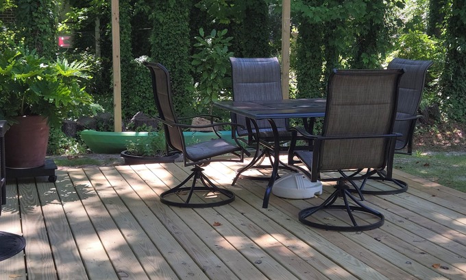 Outside there is a 200sqft patio with a grill/ griddle patio area. Seating and grill area surrounded by trees and garden...a really relaxing chill space.