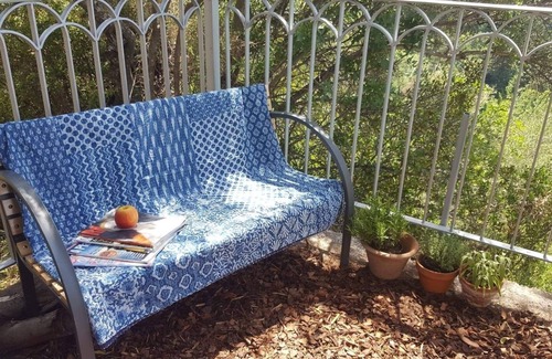 Something a bit special that stands apart from bland holiday homes , this charmingly decorated former farmhouse is set in a unique, stunning valley location with some of the best local views available, and during your stay is your home from home to enjoy the peace, beauty and nature of Liguria. You literally look out onto your own private valley of woodland and olive groves. This holiday house offers tranquility, seclusion and relaxation but also with the option to explore nearby mountain villages, enticing restaurants, a variety of lovely beaches and exciting towns like Sanremo & Monaco. Our customers have been delighted with the house and location. We have worked to make comfort, decor and facilities a high factor and this makes this holiday home above the normal standards. Cleaning is included in the price for the normal cleaning requirements. We use eco products for cleaning and laundry. Pick from our herb patch for your food preparation. Enjoy our books, music, games, art materials and media. Wifi available . Relax on our numerous terraces, sunbathe on the deck on comfortable sunbeds, read in the shade of olive trees, savour the views from our garden swing chair, explore the tiny hamlet with its mysterious tiny cobbled streets, walk in complete nature and dine on our shaded terrace areas!