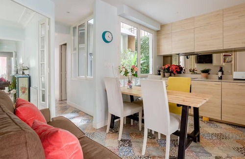 Completely renovated and impeccable but respecting the moldings, fireplaces, the parquet with a very Parisian style, modern and very practical to come with family, friends or colleagues.
