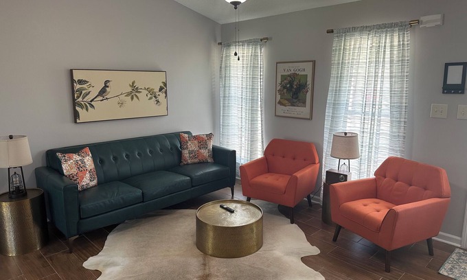 Enjoy a stylish experience at this centrally-located place. Take a walk to Southaven’s Central Park and enjoy the lakes, walking trails, playgrounds and disc golf course. The home is close to many great restaurants, Snowden Grove ball fields and Tanger Outlet Mall. You’ll be staying a mere 5 minutes away from I-55 to make travel to Memphis and surrounding areas convenient. The Memphis airport is only about 15 minutes away. Tunica casinos are about 40 minute drive from this home. Smart TVs. Your Southaven getaway awaits at this 3-bedroom house. Inside, guests will find 1 king bed and 2 queen beds, perfect for a comfortable stay. With amenities like WiFi, a washing machine, and heating, this superb property ensures a stress-free vacation. The 2 bathrooms come equipped with a hair dryer for added convenience. Book now and enjoy everything this house has to offer.