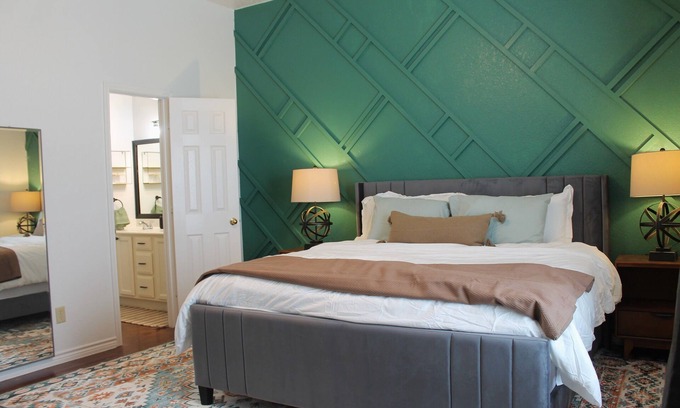 Nestled within a serene neighborhood, this 3-bedroom, 2-bath haven invites you to experience tranquility in its truest form. The soothing allure of stylish green accent walls sets the tone for a calming ambiance throughout. With an open floor plan and high ceilings that fosters a sense of openness, this home becomes a sanctuary of relaxation and comfort.