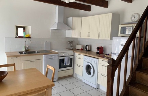 The modern, light and airy kitchen is well equipped with cooker, kettle, toaster, microwave, dishwasher, fridge/freezer, washing machine, iron/ironing board and all the necessary kitchen utensils. There is also a dining table in this area and a highchair is available. There is a Nespresso coffee machine with 10 pods, further pods can be bought at the local Intermarche supermarket.