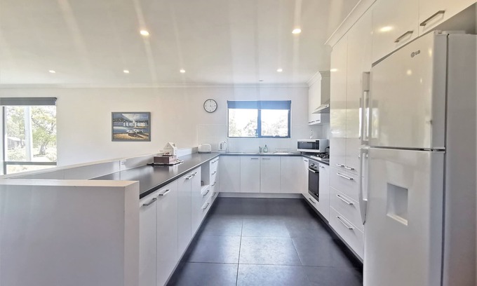 Two bathrooms and a laundry tick the boxes for groups or a large family, so you can rest assured the house is equipped to accomodate your needs. Linen is provided and for late arrivals you'll find the beds are made up and ready waiting for you to sink into after your travels.