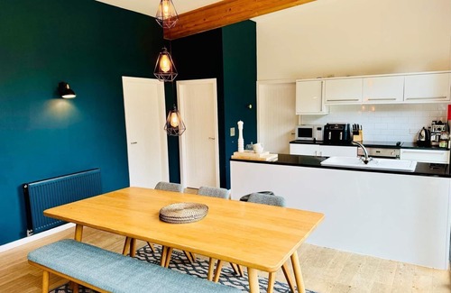 Beautiful furnishings such as the large squashy sofa and solid wood flooring throughout offer enviable levels of luxury and comfort, whilst the wood-burning stone fireplace is ideal for snuggling up after long days spent exploring the blissful Yorkshire countryside.