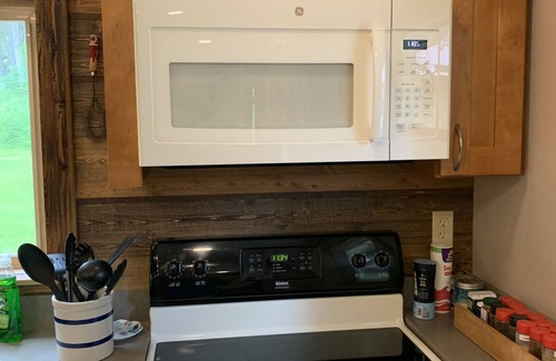 - Modern Amenities: Recently remodeled while preserving its original knotty pine charm, this single-family home features a fully equipped kitchen and modern conveniences for your comfort during your wedding stay.