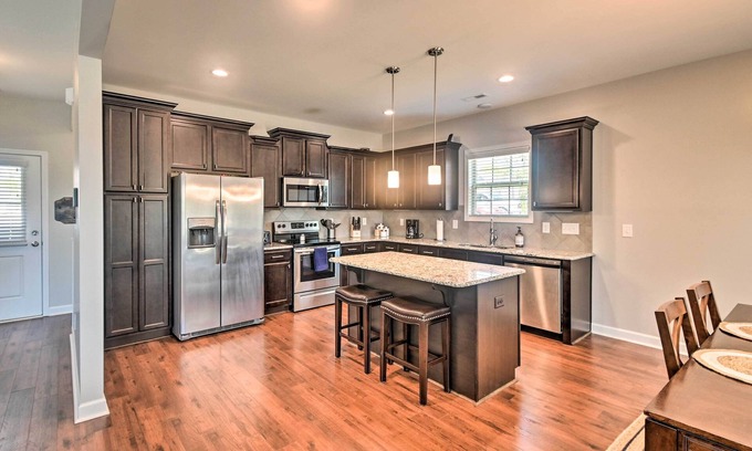 Treat your family to a stress-free vacation at this 4-bedroom, 2.5-bathroom Aberdeen home. Spend the afternoon hiking at Aberdeen Lake Park or bring along your kayaks for fun on the water! Tee off at the iconic Southern Pines Golf Club or Pinehurst Resort, take a relaxing drive to visit Fort Bragg, or watch a film at the Sunrise Theater.