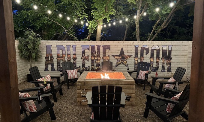 Out back, gather 'round the campfire where the Abilene Icon mural stands tall against the rustic brick wall. As twilight falls and the string lights twinkle like stars in the Texas sky, swap tall tales or toast a marshmallow while the embers glow. Whether firing up the grill irons or settling into the comfy chairs, this outdoor territory invites you to drink in that sweet Texas evening air.