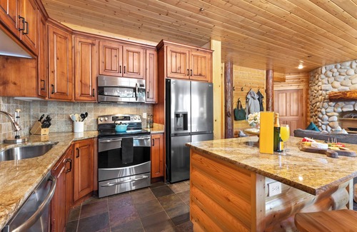 Both bedrooms have been designed to make you feel as if you've slipped away to your own private mountain retreat with their tasteful rustic accents. Guests are also encouraged to escape to their spacious private deck with seating and a hot tub after a day of exploring the slopes in winter or the lush green mountain trails in the summer.