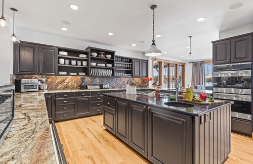 Cowboy chic style welcomes you to the true Jackson Hole experience the moment you step foot on Open Meadows Ranch. Spacious and sophisticated, the design of this well-appointed estate puts a modern spin on traditional mountain style. High ceilings and an open stone fireplace in the main house create an open, airy feeling to the main living area, flowing with ease through the open floor plan to the gourmet chef's kitchen, breakfast dining area and separate formal dining room perfect for entertaining friends and family. Work remote during an extended stay, enjoying inspiring views from the library which also features a brand new pool table. Five bedrooms are spread across two levels in the main house to create a spacious intimacy perfect for any group. Steps from the door of the main house you'll find an additional 4 bedroom cabin comfortably appointed with it's own amenities, living and kitchen areas to make everyone feel at home, office space and a Peloton for off-season pedaling.