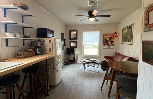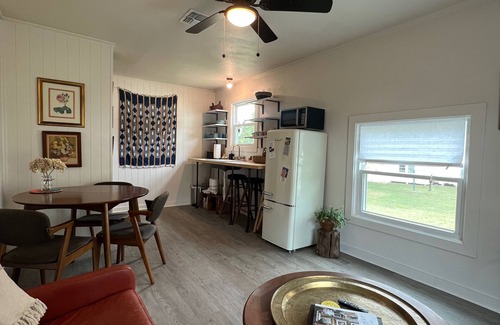 This quiet and eclectic garage apartment is conveniently located within the town square, where you'll find yummy restaurants, lively libations, and cute shops for anyone needing a little retail therapy! And if that's not enough, Round Top and Schulenberg are approximately 15 minutes away. But don't forget to tour the Painted Churches in the area! And for the more adventurous, the Colorado River's public boat ramp is just minutes from the property.