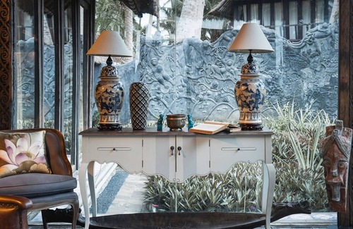 The interior of the Villa combines designer furniture and details from different eras and countries, many unique items, created based on sketches by the owners - architects. Chests Felix Monge, flowing chandeliers Terzani, a dining area, Louis 15, Chinese porcelain lamp, antique, designer chandelier ship, created by the architects, carved panels and doors collected from different Islands of Indonesia, many beautiful objects, all this is a story of a beautiful tale of travel and romance.