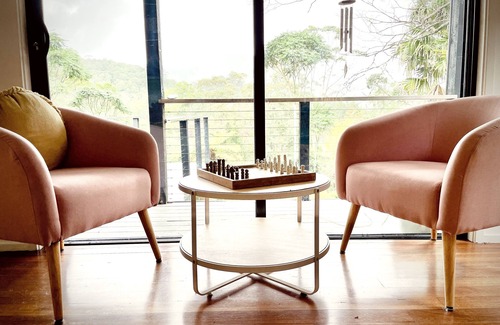 Pencil wood farm is an incredibly peaceful four bedroom holiday home surrounded by undisturbed rainforest. Located by the permanently flowing Brogers Creek, you can swim in the creek in summer, and take misty mountain walks in winter. It has breathtaking mountain views enabling you to truly relax and unwind. Walk amongst ferns, say hello to wombats and enjoy this well appointed home with a fresh kitchen and bathrooms. Outdoor fire pit is perfect for fireside chats and there is heaps of space for the kids. The township of berry is 15 minutes away and it’s only 2 hours from sydney.