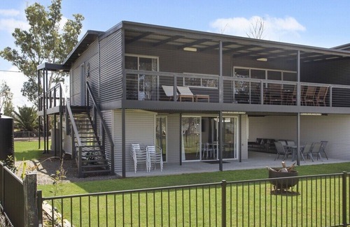 4 bedrooms (3 queen, 1 bunk room for 3), bathroom & toilet, fully equipped kitchen, lounge/dining with games, DVDs & TV, large river deck with dining for 10, plus a rear deck with sunset lounge.