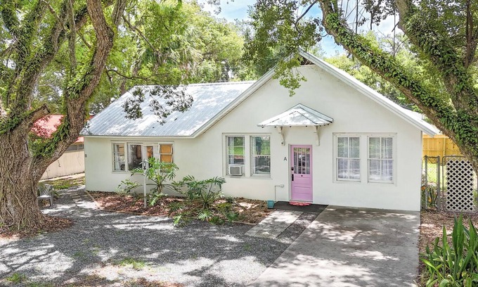 Discover the beauty of Fruitland Park from this 2-bedroom cottage. Nestled in a peaceful setting yet easily accessible off the 441. This superb property offers a cozy retreat for guests. Unit A has been completely remodeled. Gorgeous yet comfortable living room and kitchen. Bedroom 1 has a queen bed with a walk-in closet and a smart TV. Bedroom 2 has a twin bed, a workstation, and a smart TV. Quaint fenced backyard with lounge chairs. Located next to Gardina Park and the Fruitland Park Community Center. Daily pool rates are $3 per person. Rent a kayak or take a boat tour at Lake Griffin State Park just minutes away. Walmart is just over 1 mile away. The Villages, Spanish Springs, UF Health Hospital, Great shopping, and a plethora of fantastic restaurants are all less than 10 miles away. Generally, a little over an hour from Orlando International Airport, depending on traffic. This beautiful space provides a memorable and comfortable stay. We're happy to assist with any questions while you stay at our cottage.