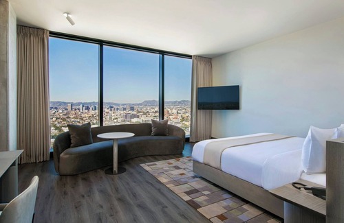 AC Hotel Downtown Los Angeles, a Marriott Hotel offers 347 air-conditioned accommodations with safes and complimentary bottled water. Beds feature down comforters. 55-inch LED televisions come with cable channels. Bathrooms include showers and hair dryers.