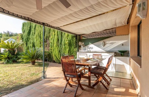 Res. Torremirona Golf: Very beautiful, comfortable house "acacies", 2 storeys. In a quiet, sunny position, 20 km from the sea, on the golf course. Private: property 400 m2, beautiful, well-kept garden (fenced) with lawn and wildlife garden, swimming pool kidney shaped (3 x 7 m, seasonal availability: 01.Jan. - 31.Dec.). Outdoor shower, pool house with cooking stove, pergola, garden furniture. In the complex: restaurant, bar, fitness room, spa area in 200 m, central heating system. Parking at the house. Grocery, supermarket 500 m, restaurant, bar 200 m, bus stop "Peralada" 1 km, railway station "Figueres Renfe Adif" 10 km, sandy beach 20 km. Tennis 500 m, sports centre. Nearby attractions: Museo Dalí en Figueres 10 km. 24hr guard.