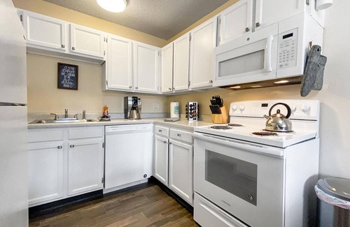 Discover a fully furnished condo with a complete kitchen featuring a full-size fridge, stove/oven, microwave, and dishwasher. The living room boasts a queen sofa bed, though note pull-out couches are most comfortable for younger children. Enjoy entertainment on a large SmartTV with YouTubeTV and DVR movies. WiFi is included.