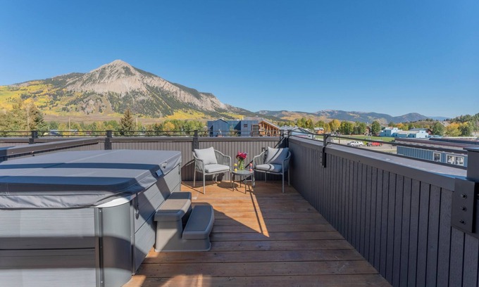 The highlight of Larkspur is the expansive rooftop patio. Take in unobstructed views of Mt. Crested Butte and Red Lady while soaking in the private hot tub, grilling on the large outdoor grill, or enjoying a drink with friends. The spacious patio is perfect for outdoor dining or stargazing on clear nights. You’ll also have access to a beautifully landscaped community courtyard, which blooms with vibrant flowers during the warmer months.