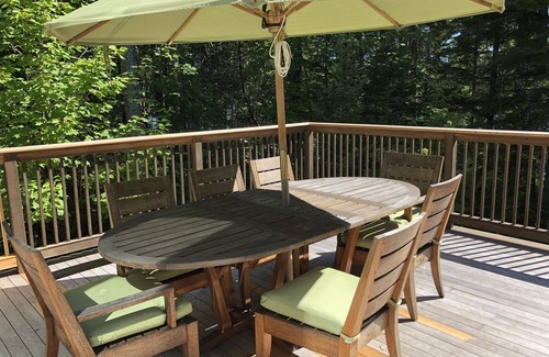 Pinon Cottage is nestled in a private wooded setting on Long Pond, a favorite pond on Mount Desert Island for canoeing, kayaking, swimming, fishing and listening to the resident loons. Complete with its own dock on the pond, large deck with comfortable seating, hot tub, and screened in porch, this cottage is the perfect retreat for getting away from it all. Inside you will find quality furnishings and linens. With its central island location, you're never too far from any of the Island's villages, Acadia National Park, hiking on Beech Mountain, or picking up fresh produce at Beech Hill Farm.