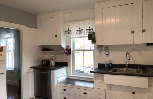 Renovated home with three bedrooms & two bathrooms- sleeps 6, Queen Beds-2 & Full size Bed-1. Downstairs bathroom with shower, toilet & vanity, upstairs bathroom with shower, toilet & vanity-same floor as bedrooms, fully equipped kitchen-including dishwasher & garbage disposal, beverage/wine cooler, dining room & living room. Full size sofa sleeper in living room in addition to the beds that sleep 6. TV Streaming Service, DVD player, wireless internet access, ceiling fans, air conditioning/electric heat, electric fireplace, washer/dryer. Picnic cooler provided. 4 bicycles available for your use & outdoor propane gas grill , picnic table, propane fire pit, 6 outdoor folding chairs along with 2 Adirondack chairs. Table games provided. Enjoy the large yard to play games in-CornHole game, frisbees provided. Soaps, linens, towels provided. Electric car charging station-Level 2 available upon request. There is a STRICT NO PET policy.