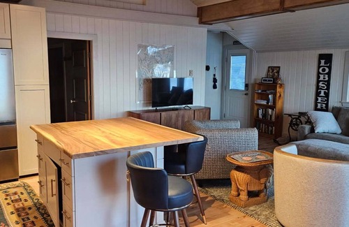 Enjoy your morning coffee or dinner on the oceanside deck while waves splash underfoot. This home is situated at the mouth of prospect harbor. It’s deck overlooks open ocean with deep water frontage. Take the local ferry to MDI to explore Bar harbor’s restaurants and shops, or stay local and enjoy the less traveled side of Acadia National Park, Schoodic Pennisula (5-10 minute drive).