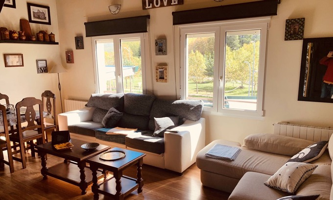 Rustic duplex apartment with three bedrooms with high ceilings and wooden beams. Rural apartment right in front of the ground floor, located on the second floor, of a two-story building. A quiet place where you can enjoy one of the best views of the ski resort "la pinilla" and near the center of the town, of course a few minutes from the most charming villages of segovia such as: Las Hoces del Duratón, The ski resort of La Pinilla, Sepúlveda, Duruelo, Pedraza, Prádena, etc.