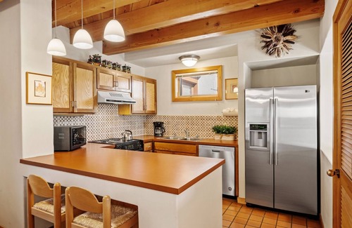 Acoma is adorned with lovely Santa Fe style accents, with wood beam ceilings and a lovingly decorated living space centered around an enchanting fireplace.