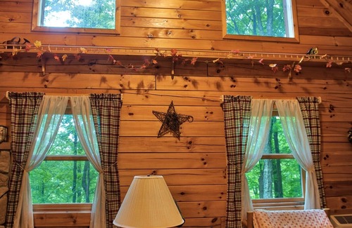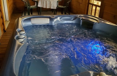 You walk in to the screened-in porch featuring a private hot tub, and through the door is the open floor plan and loft bedroom. Cuddle up by our gas log fireplace and TV, or go out back and enjoy a real fire around the pit. Listen to some music with our small sounds system above the fridge while you cook, or play the games that we have provided in the armoire. The cabin itself is spacious and welcoming, with everything you need for a romantic getaway.