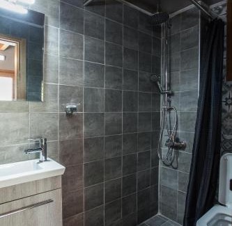 Offering quiet street views, Acorn's Houses, Gray and Green Acorn in Kalloní features accommodations, a garden, and barbecue facilities. With inner courtyard views, this accommodation provides a patio. The vacation home offers garden views, a sun terrace, and free Wifi is available throughout the property. Overlooking the mountain, rooms in this vacation home are accessible via private entrance and comprised of a flat-screen TV and a private bathroom with a shower and a hair dryer. A fridge is also featured, as well as a coffee machine and a kettle. The rooms are equipped with heating facilities. Guests at the vacation home will be able to enjoy activities in and around Kalloní, like walking tours. Guests can also warm up near the outdoor fireplace after a day of hiking. Kastoria National Airport is 37 miles away.