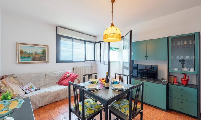 Located in the quiet neighbourhood at the seafront of Lungomare Europa, the apartment is a 9-minute walk from the shore. A one-bedroom apartment for 2, it is situated on the second floor with a private balcony, accessible from the bedroom and the dining area.