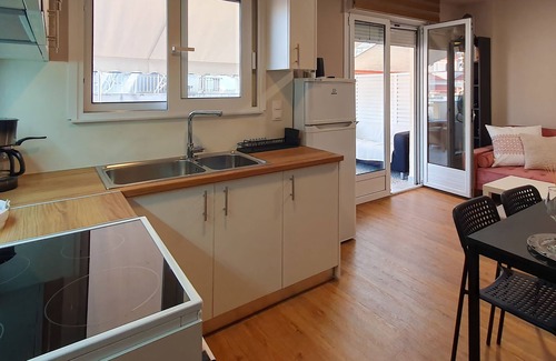 The Cozy Acropolis Terrace View Apartment promises a memorable Athens experience. With a view of the Acropolis and a prime location, barely a two minute walk from Petralona metro station, guests can explore the city's top attractions while enjoying a peaceful, modern interior. The terrace is perfect for having breakfast or a glass of wine in the evening, fully equipped kitchen, and sleep soundly in the comfortable bedroom. This apartment is perfect for couples or small families.
