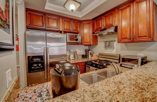 Mickey & Friends is a beautiful, kids friendly, fully remodeled 2 bedroom condominium located at the end of Magic Way, a 5 minutes walk that leads you to the Disneyland tram station or Downtown Disney where you can board the famous Monorail into Disneyland if you have your Disney Passports in hand; the perfect location for getting out and back to the 'Park' with minimum hassle. Mickey&Friends is the perfect alternative to a pricey hotel 'room' at an affordable rate, perfect for families on a budget. With you in mind we tried to offer a comfortable and homey enviroment by providing all amenities in our vacation rental :brand new stainless steel appliances, hardwood floors,granite countertops, beautiful landscaped patio, enclosed community swimming pool, wading pool, a large spa that stays warm all the time, an enclosed playground for the kids with top of the line equipment, garage and stall parking, internet access, dish network, and a complete city walk of shops and restaurants across the street at Downtown Disney. We've tried to think of everything you might enjoy, including a DVD video library, 43" flat screen, DVD-TV combo in the master bedroom, Queen sized bed, a twin/ full combo bunk for the 2nd bedroom, coded entry so you don't have to worry about the keys, iPod docking station, classic board games, children's toys, a Port-a-Crib, a safety gate for the stairs, single stroller, highchair, and a 2 person WIl gaming system with a variety of WII games! And finally, our latest addition, a Keurig Coffee (pod) Brewer complete with K-cups.