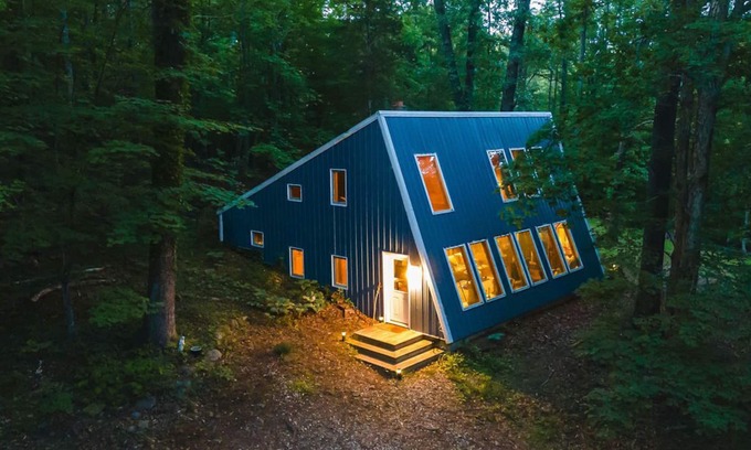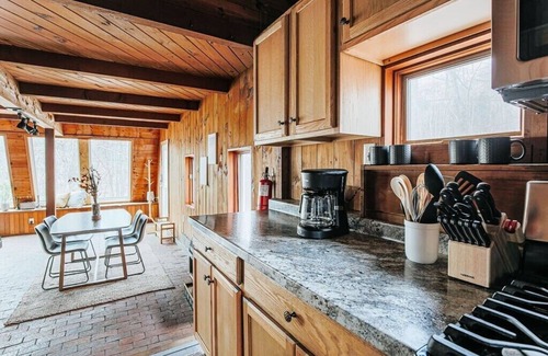 Acute Lodge delivers a trendy, boho getaway in the popular destination of Nelson County. This geometric home offers privacy in the woods on just under 13 acres, but is within a 20 minute drive to breweries and 25-30 minutes to the popular Nelson 151 destination. With plenty of amenities (including fiber internet), Acute Lodge is the ultimate restorative getaway perfect for couples, friends, or even small families. Your pup is also welcome to join with an added pet fee. No cats, subject to fine.