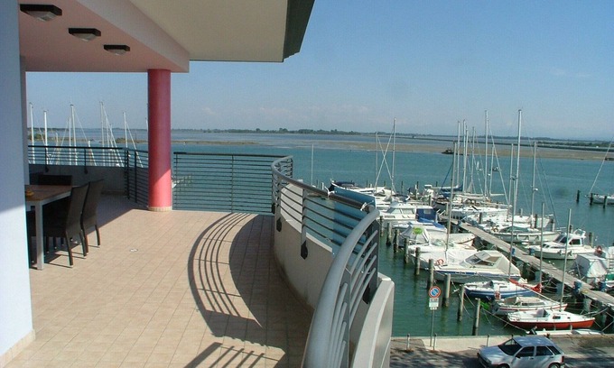 Apartment with large terrace overlooking the Grado lagoon and the Carnic Alps.