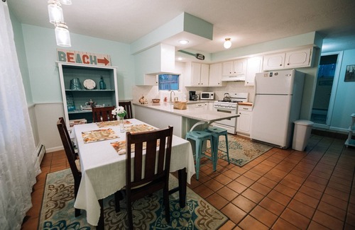 The cottage sleeps 8 guests comfortably. There are two newly renovated full bathrooms, and two bedrooms--one with a queen size bed with a private bathroom, and one with a double and a single bed. One of the great rooms has a queen size pull out bed and there is also a roll-away bed and portable crib available. The eat-in kitchen is large and has all updated appliances. There is a laundry room with a free washer and dryer. There is FREE WIFI, basic cable, and the cottage is air conditioned.